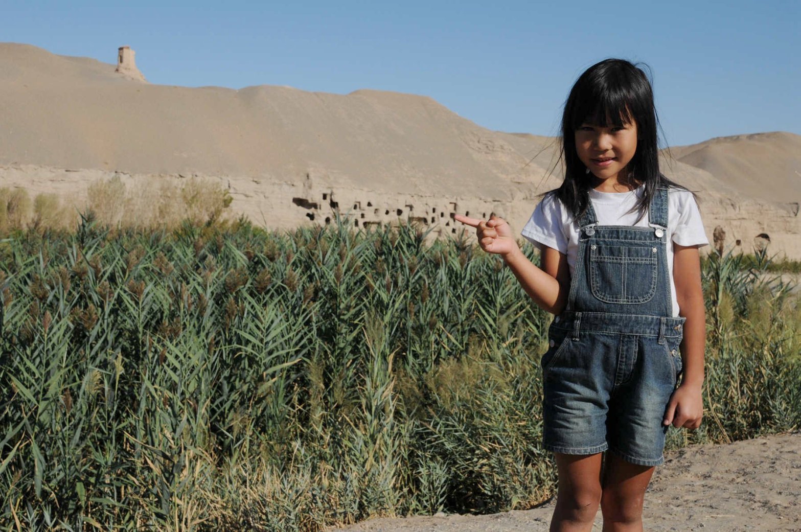 其實萱萱對旅途中的歷史古蹟比較不感興趣,大部分的解說牽扯到朝代等許多專有名詞,她也大多聽不懂。所以我們都盡量將歷史故事簡單化,甚至加進一些萱萱自己想像的人物。就像莫高窟,萱萱認為那是巨人所畫的壁畫,我們也不去戳破這顆想像的泡泡,就將它放入歷史故事裡吧!
