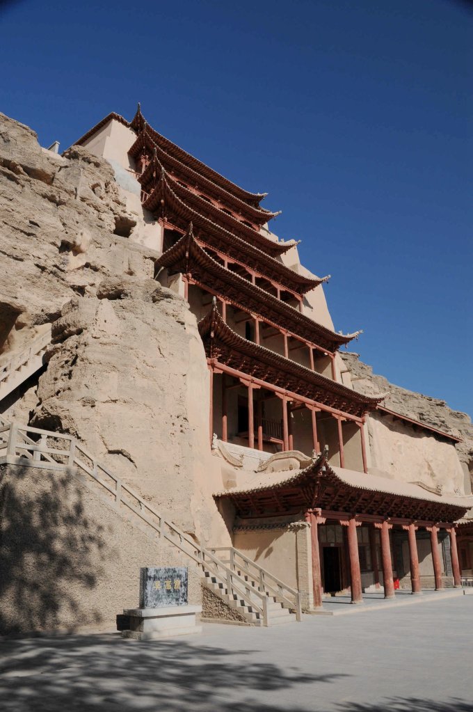 莫高窟位於敦煌市東南25公里處,開鑿在鳴沙山東麓斷崖上。建於前秦建元二年(西元366年),歷經北涼、北魏、西魏、北周、隋、唐、五代、宋、回鶻、西夏、元等朝代,延續著千年不斷的鑿窟造像,形成了南北長1,680公尺的洞窟佛寺群。
