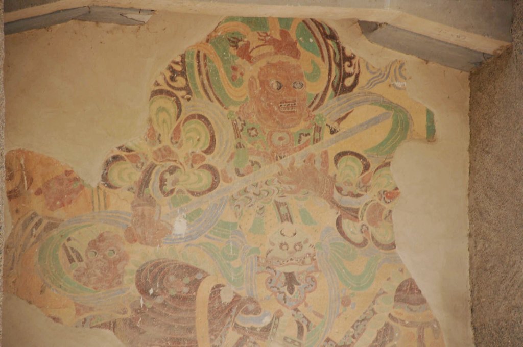 哇!這麼大、這麼高的畵到底要多大的手才畫得出來呀?是巨人才能畫吧!所以莫高窟應該是巨人的畫廊囉?我覺得,這麼大的圖畫,如果不是巨人畫的,那一般人要怎麼爬的那麼高呢?所以一定是巨人畫的!