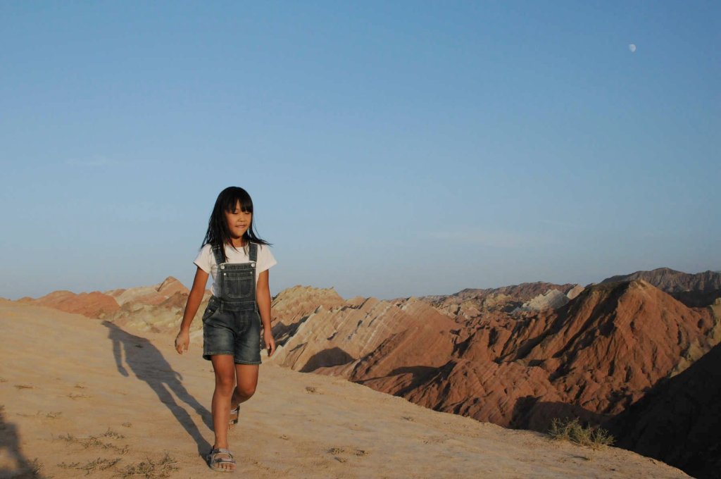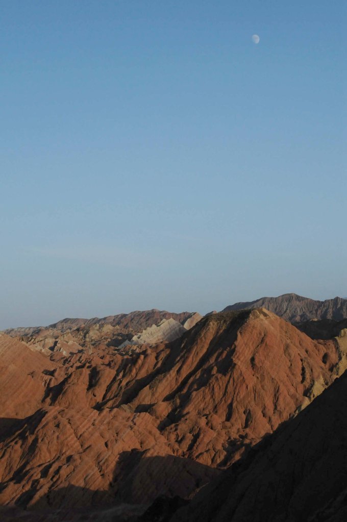 走訪玩劈劍石後,又到了附近的丹霞地貌公園,位於張掖市臨澤、肅南縣境內,面積約510多平方公里。丹霞地貌奇觀形成於600萬年前,主要由紅色礫石、砂岩和泥岩組成,有明顯的乾旱、半乾旱氣候之痕跡,以交錯的層理、陡峭之山壁、垂直之節理、色彩之斑斕而奇特,其磅礡壯觀的場面、奇特艷麗的造型令人為之讚嘆不已,更被《中國國家地理》雜誌評為中國最美的七大丹霞地貌之一。更重要的是,這裡的遊客不多!所以遊來相當盡興,拍照取景也容易拍到滿意的照片。