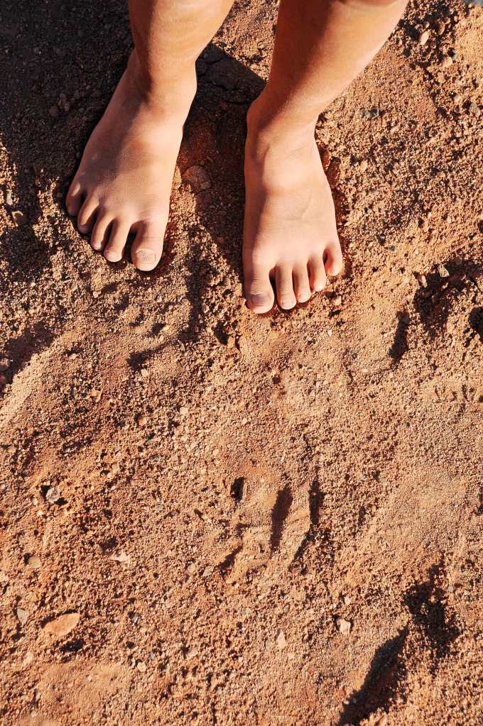 脫了鞋子踩踩看,是不是很燙?真的熱熱的耶!