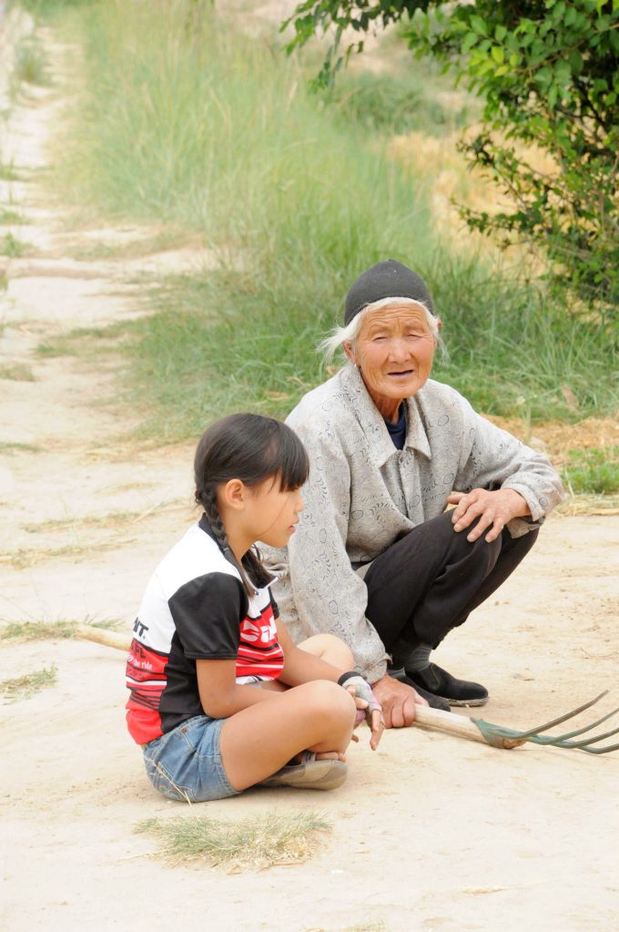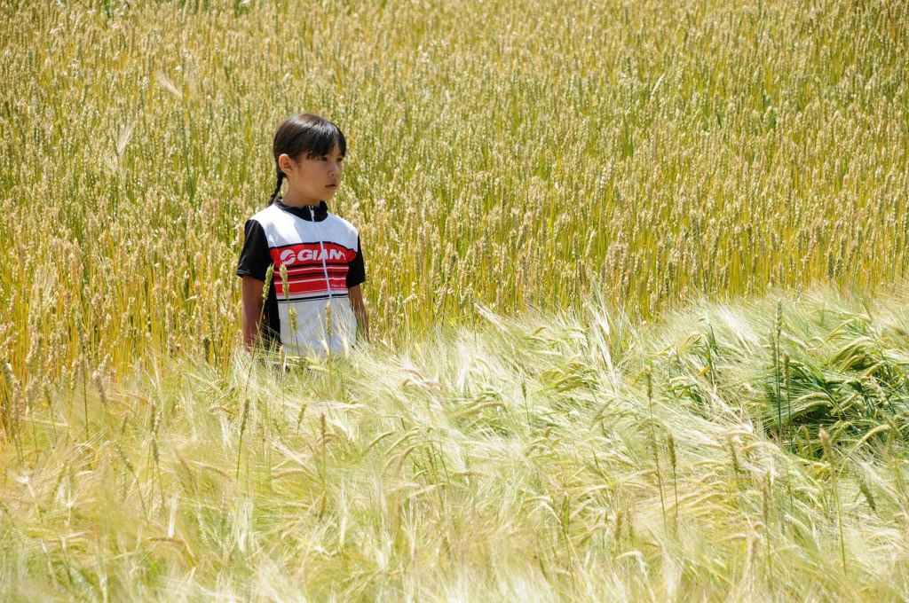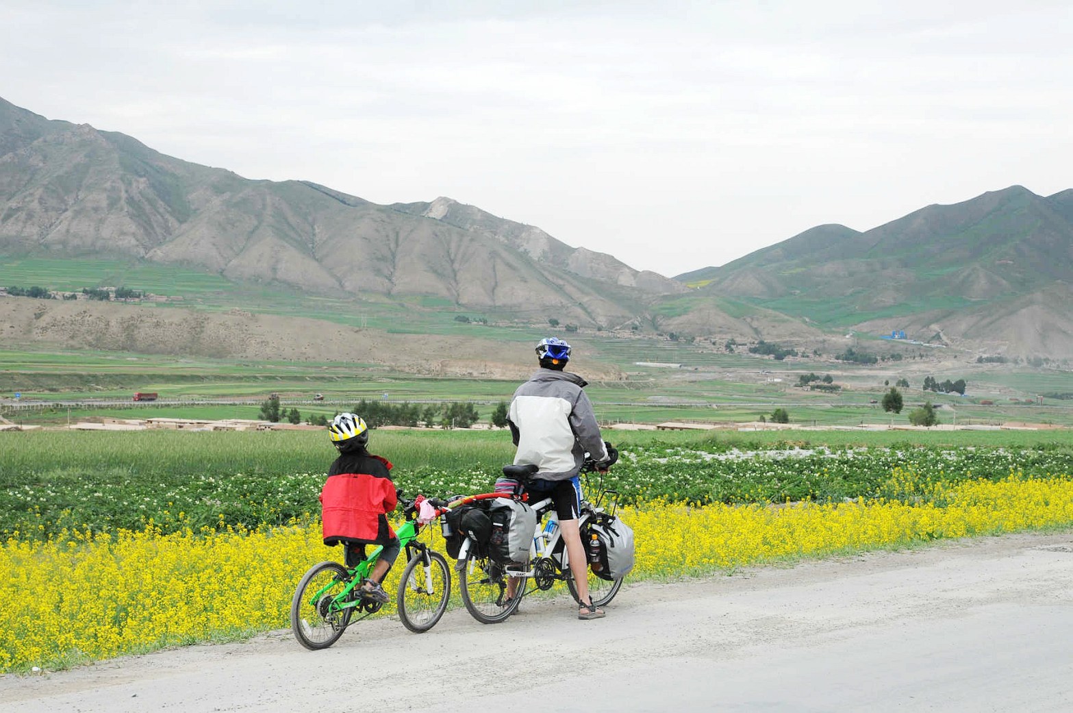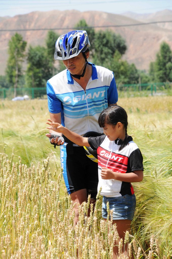 目前正是麥子收成時節,到處可見收成的麥堆。下坡後,附近屋舍幾個人喲暍著我們休息喝新鮮犛牛酸奶,武威的客人、老爺爺、老闆娘等話題都圍繞著陳萱打轉,這麼小的娃兒,就能騎這麼長的路,他們家兒子都這麼大了還沒有這個機會。