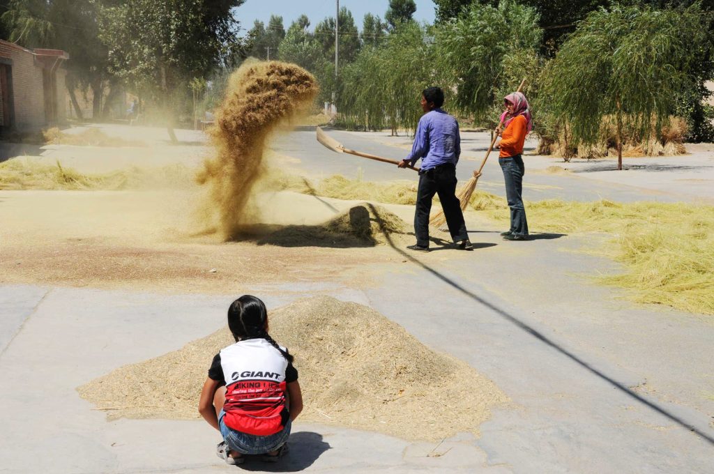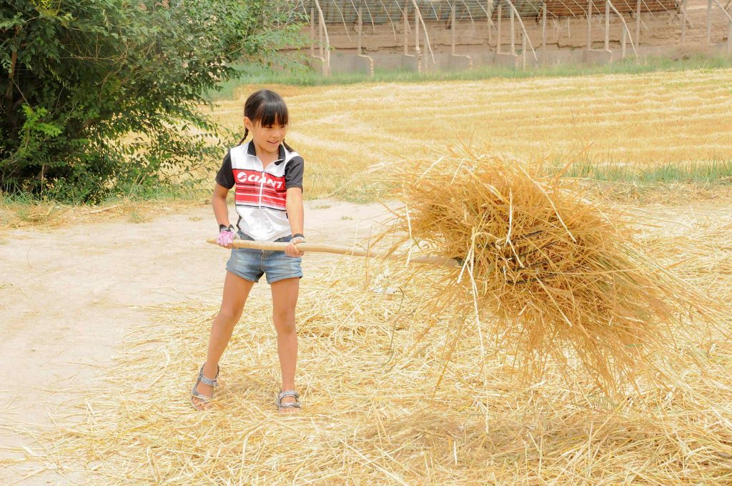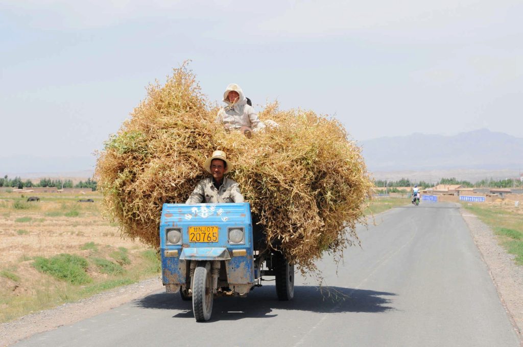 馬路時常見到農人鋪麥草讓來往汽車輾過,再將輾開的麥子掃起集中後,將之拋到空中,靠著風吹,分離麥子及泥土。但是這就苦了騎車而過的我們,迎面而來的灰塵,讓眼睛睜不開,飛進了眼睛又是不舒服,第一次陳萱沒經驗,眼睛飛了灰塵,後來拖車時,就教他將眼睛閉上。