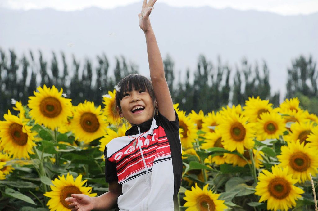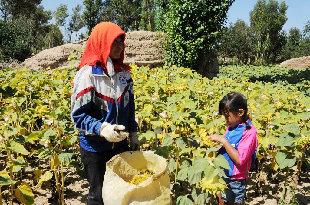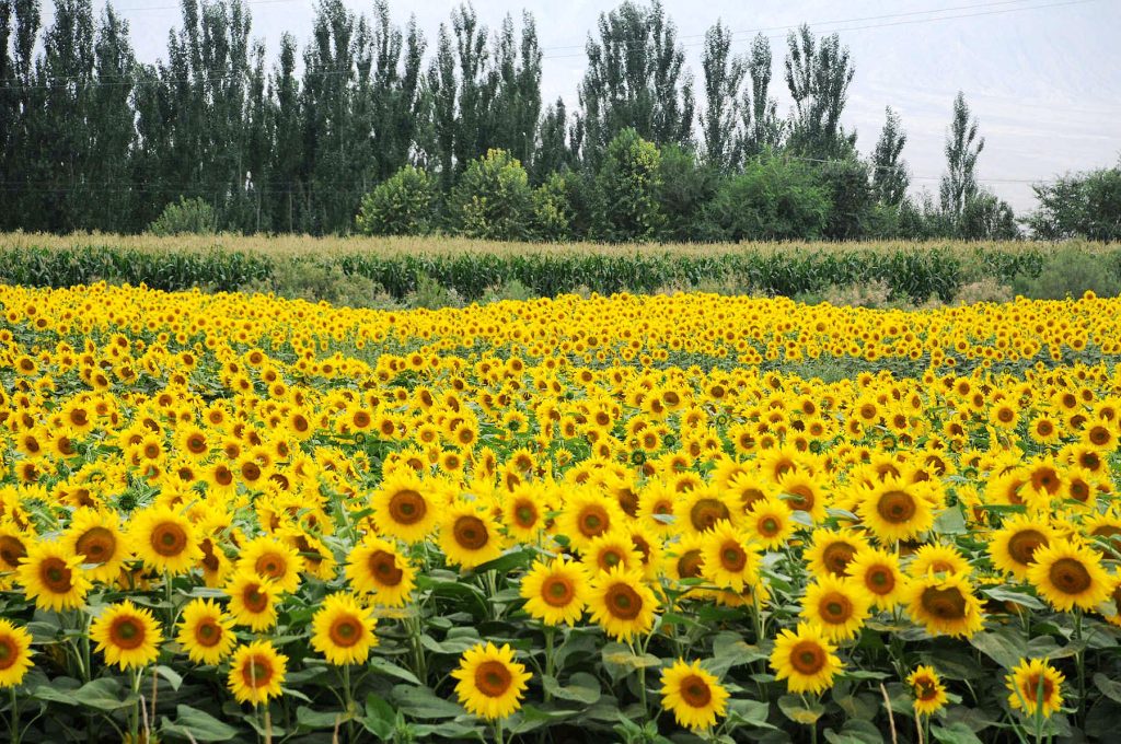 離開赤金鎮綠洲中的農田阡陌,種滿不同的農作物,空氣中不時飄來不同的香味,看到農婦正在採收向日葵,停下車來進去參與。