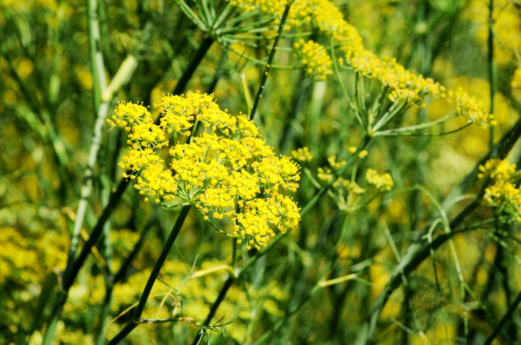 搖曳在燦爛陽光下,開著黃色小花的植物,詢問之下原來是茴香。