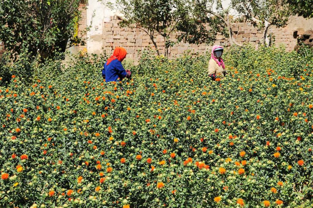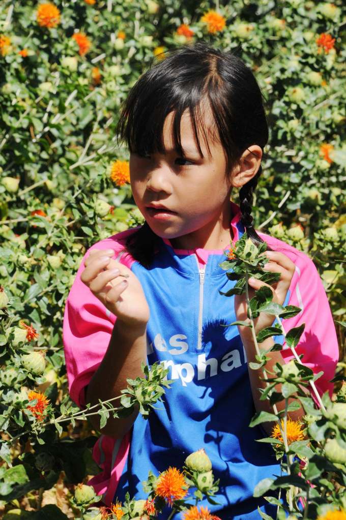 看到茴香後,再往前騎,開著紅色花的田裡,2位農婦熟練的忙著採花,濃重的口音一時聽不懂究竟是什麼?看了布袋中的剛採下來的花朵,原來是紅花,這片土地的物產豐富,而這次也因為放慢騎乘速度,才能深入的觀察,也因此認識了許多作物,比環球時每天騎車趕路,更覺得很有意思。