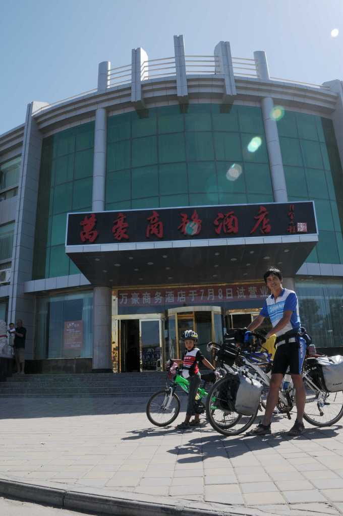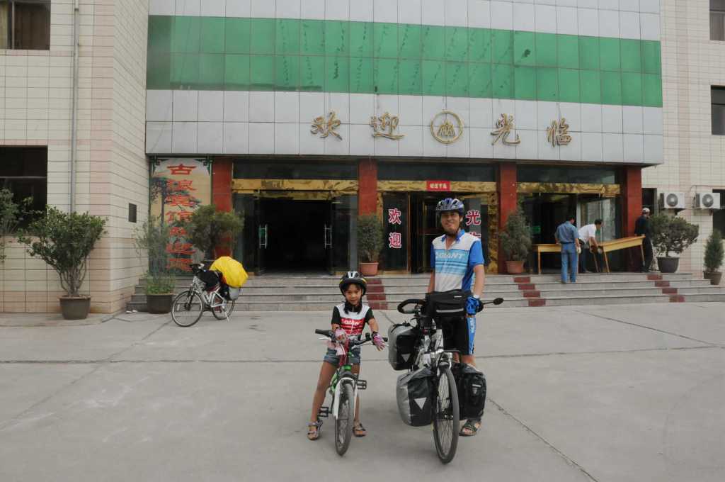 往永登的路上陳萱有點不想騎車,騎個2公里就想休息或拖車,決定不理他,讓他騎後段3公里,他一路哭著,還是騎到目的地,寬容還是要有原則限度的。而且當天非常的累,由於一路緩爬坡,陳萱騎的較少,又在鬧情緒,以騎乘速度計算,天黑前有可能騎不到永登,因此趕路趕的又累,對陳萱的不停說話又有點發火,但是情緒必須掌控好,不能隨便爆發。尤其只要一拖車,陳萱這小傢伙精神一來就會一路講話,問問題。