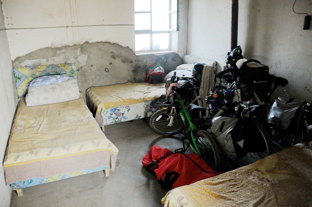 一路緩上坡騎的非常辛苦,只能緩步而上,爬上了一碗泉的山口,收費站公安開車去幫我們確定有沒有住宿的地方,一碗泉玉泉飯莊內只剩一間空房,其餘都被高速公路護欄的工作人員住滿了,下午7點多晚班的上工,9點多白班的才返回,十多個人擠在不大的客廳看電視等吃飯,他們從河北河南來此工作1個多月了,實在辛苦,想想我們雖然只有一間小小簡陋的房間,但也只需擠一天,比起他們也沒得抱怨了。