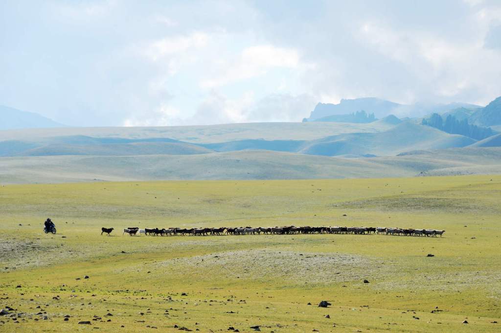 欣賞慕士塔格雪峰倒映在卡拉庫里湖深藍湖水的自然美景後,沿著高原谷地往南行,陽光普照的高山草場上散落著柯爾克孜族的氈房和放牧的牛羊,滿眼高原寧靜景致。公路再一路的爬升翻越烏魯克熱瓦提達坂(4069m),沿途也可欣賞慕士塔格雪峰及冰河的壯麗風景;經塔合曼村,抵達塔什庫爾干。
